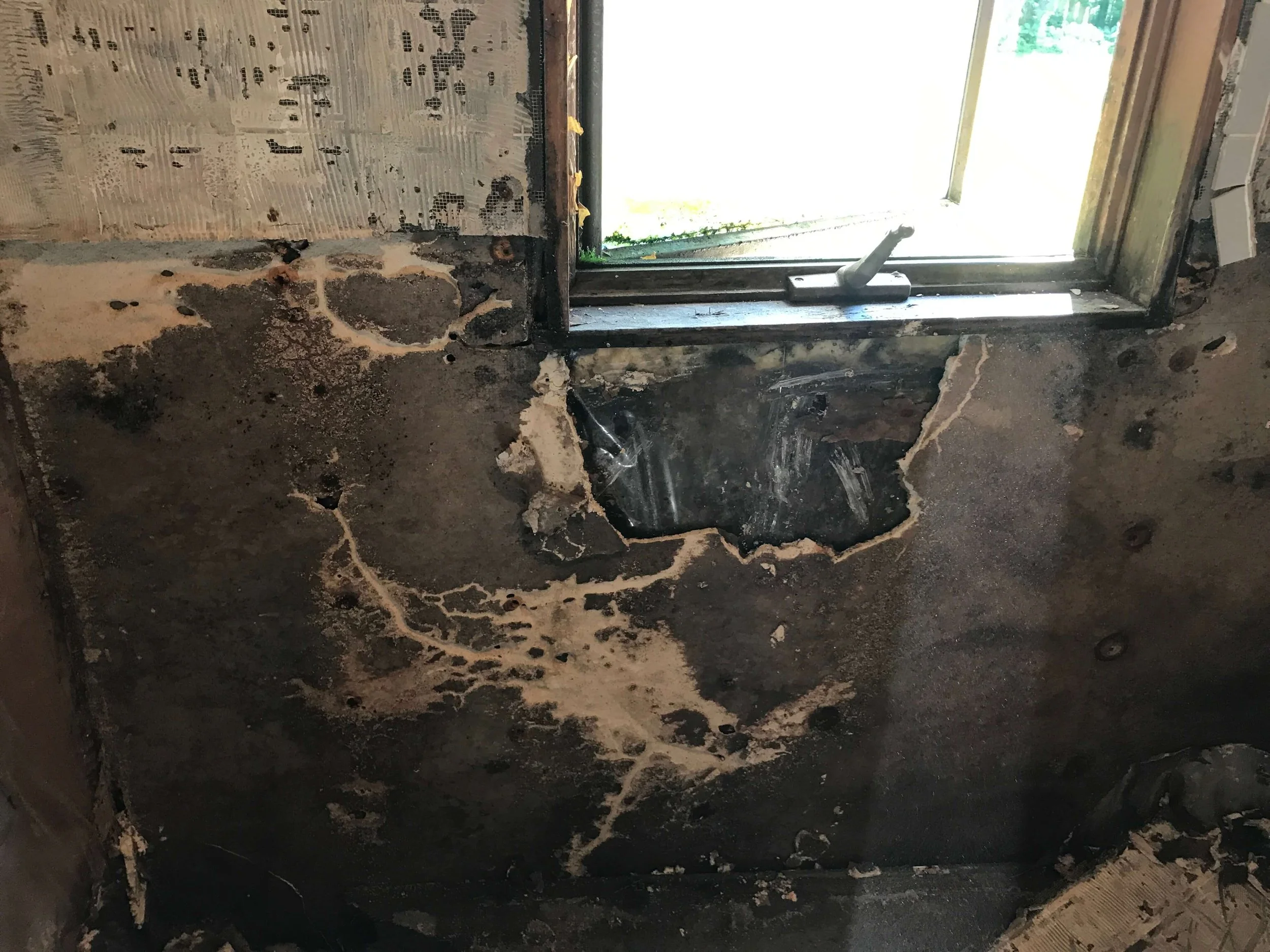 Evidence of water intrusion was observed, which has resulted in significant damage to the wall structure. Further evaluation and repair by a qualified contractor was recommended.